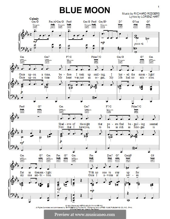 Download Digital Sheet Music Of Blue Moon For Piano Vocal And Guitar