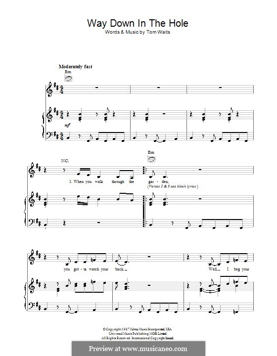 Way Down In The Hole Sheet Music Tom Waits Piano Vocal Guitar