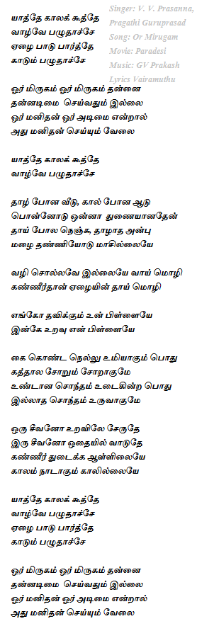Gaandu Kannamma Tamil Song Lyrics In English Vivek Mervin Song Lyrics Download In Pdf