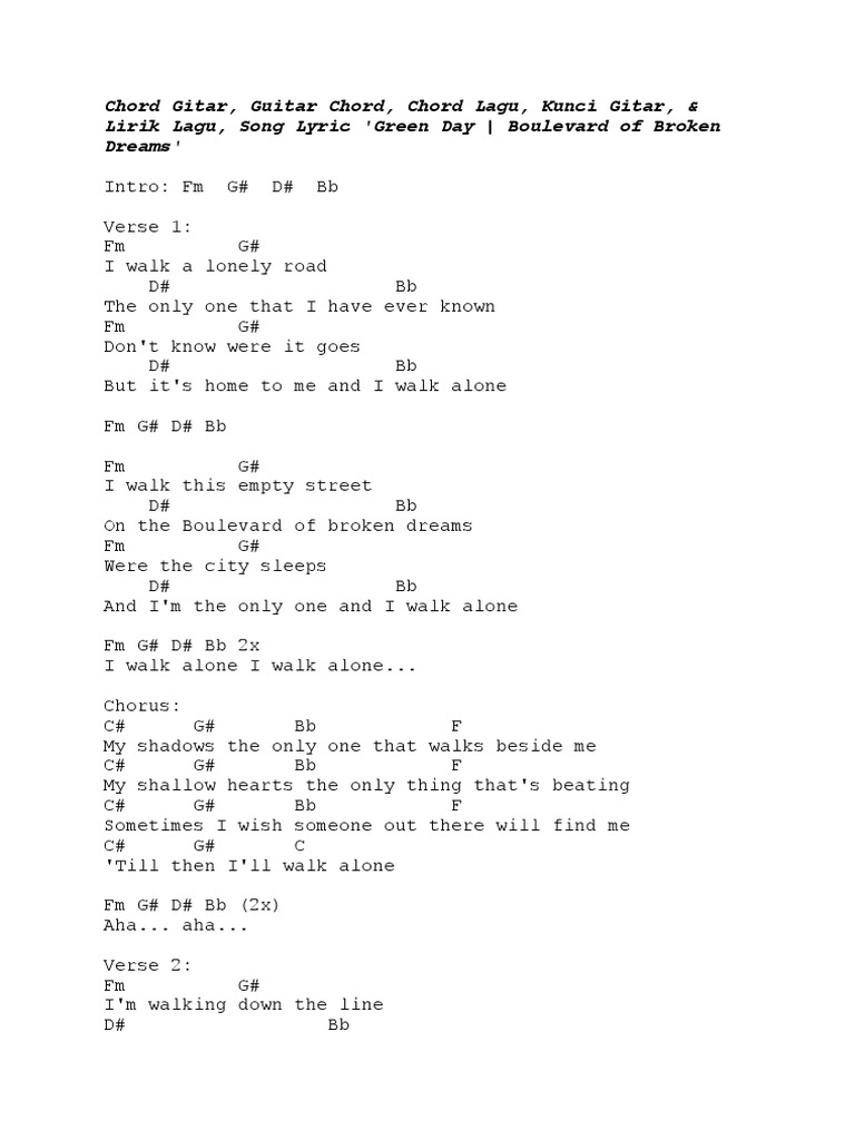 Green Day Boulavard Of Broken Dreams Lyrics Chords Chordify