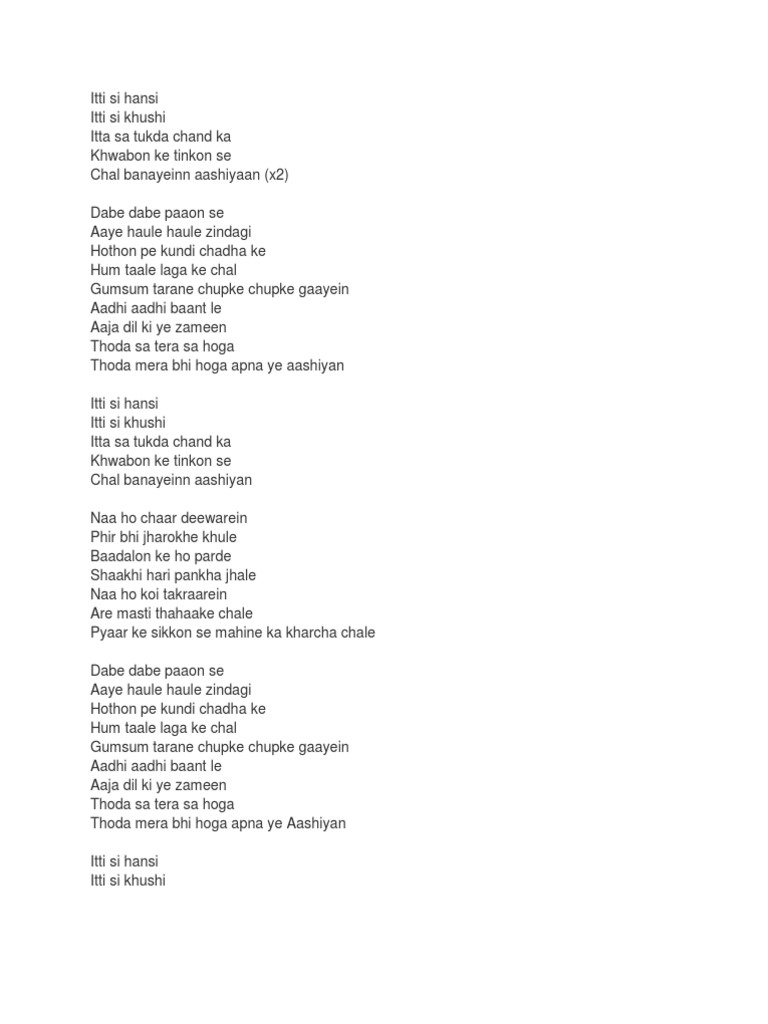 Can You Give Me The Lyrics Of Haan Hasi Ban Gaye Brainly In