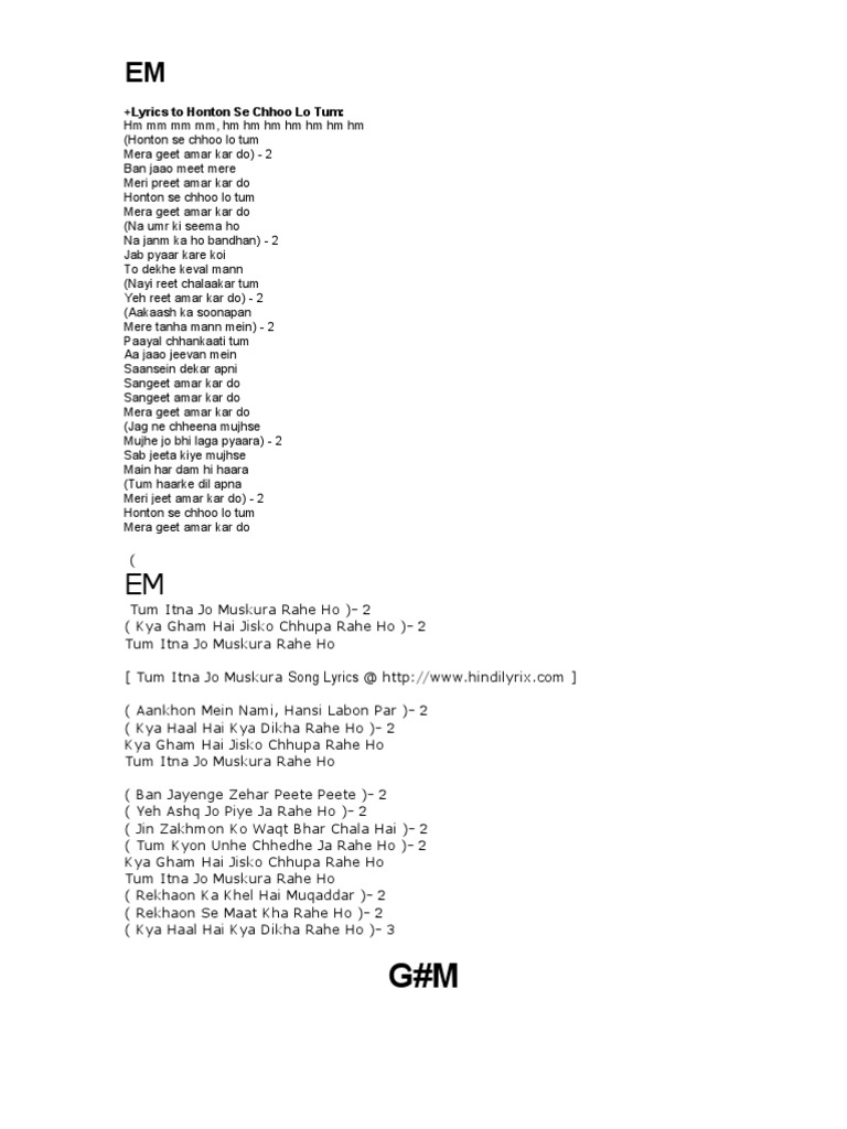 Lyrics To Honton Se Chhoo Lo Tu1