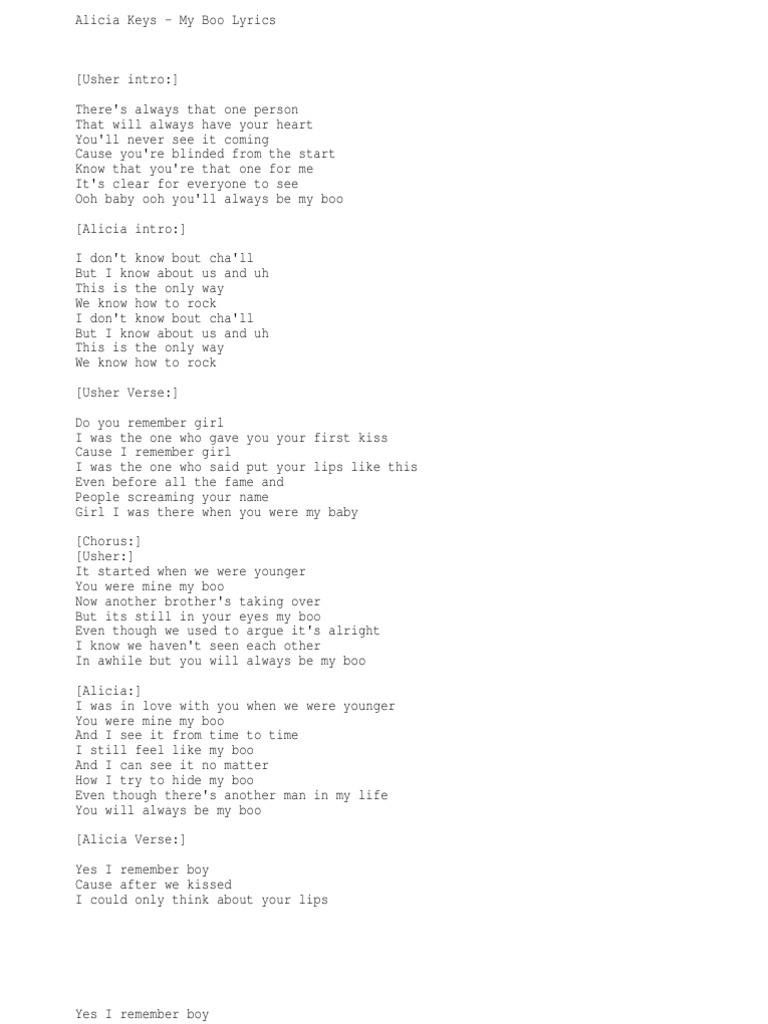 My Boo Main Lyrics By Usher Alicia Keys My Boo Listen To