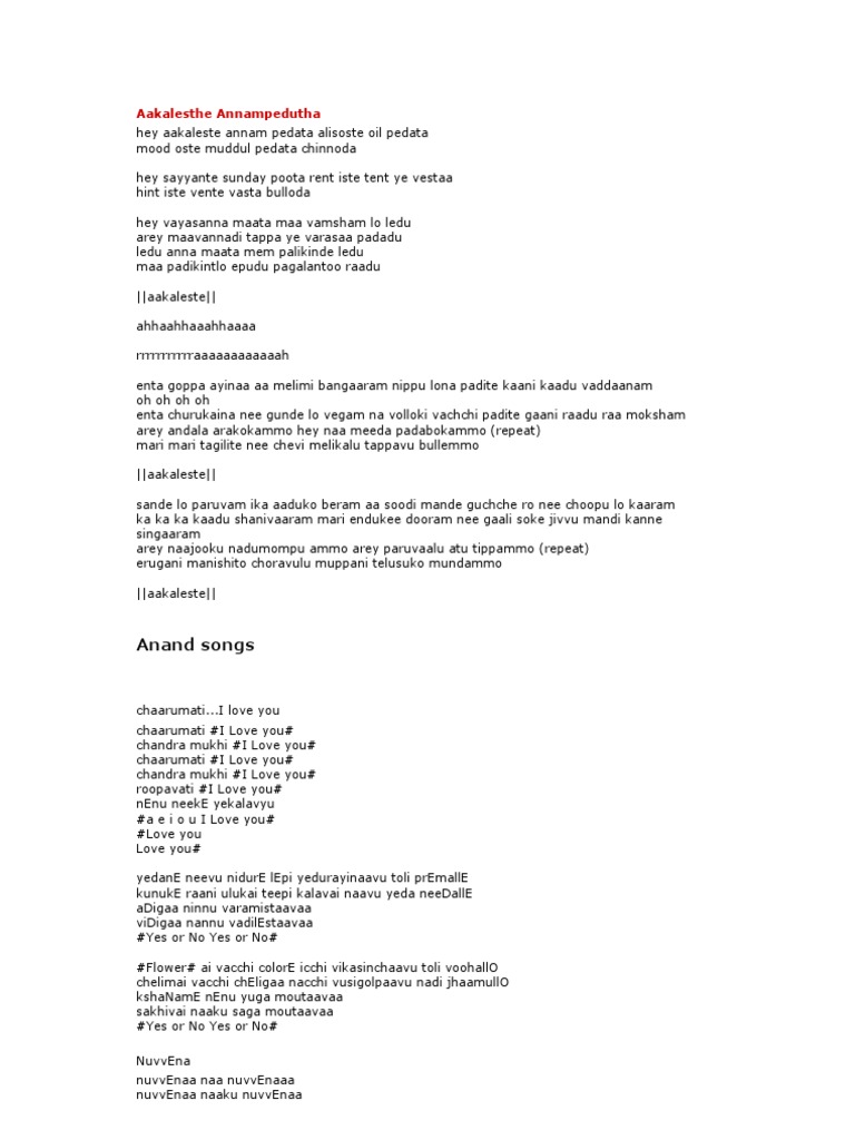 Lyrics Center Telugu Love Songs Lyrics