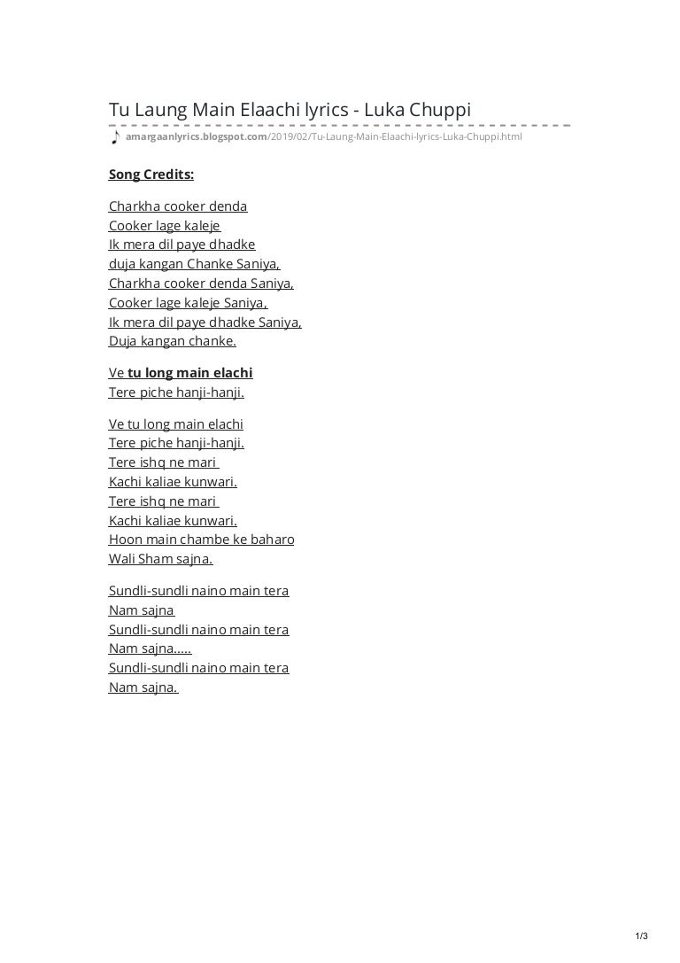 Tu Laung Main Elaachi Lyrics Luka Chuppi In English All Status For You