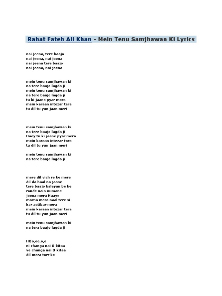 Main Tenu Samjhawan Ki Lyrics Download Pdf High Powerpremier
