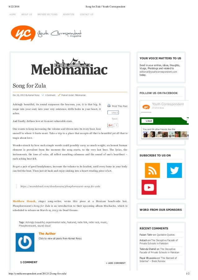 Thoughts On A Song Song For Zula By Phosphorescent Rheikkan The Arcane Siren
