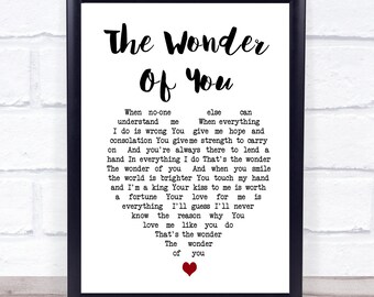 Black Wonderful Life White Script Song Lyric Quote Print Red Heart Print