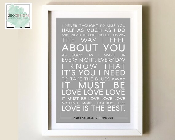 Valentine S Day Gift Song Lyrics Print Wall Art Etsy