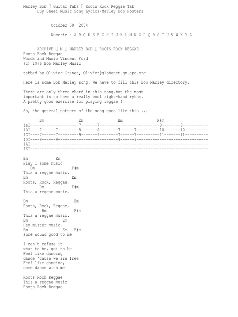 Marley Bob Guitar Tabs Roots Rock Reggae Tab