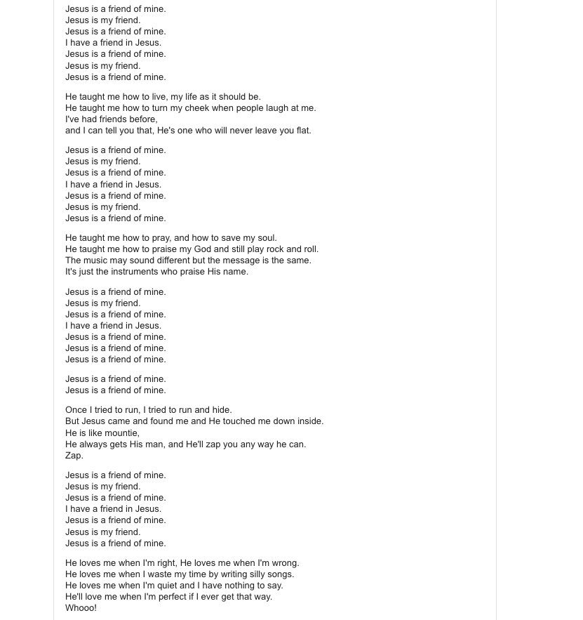 Hymn And Gospel Song Lyrics For Jesus Is A Friend Of Mine By Avis Christiansen
