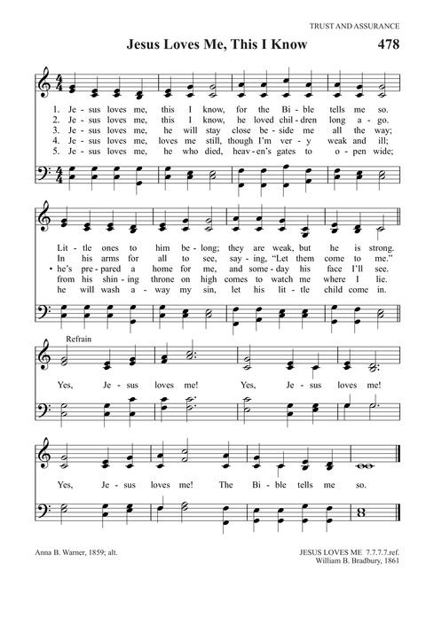 Trinity Psalter Hymnal 478 Jesus Loves Me This I Know Hymnary Org