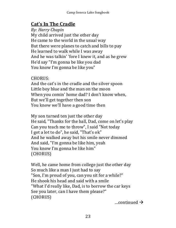 Summer Camp Song Cat S In The Cradle Harry Chapin With Lyrics And Chords For Ukulele Guitar Banjo Etc