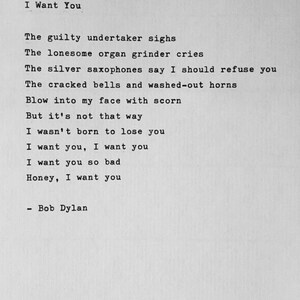 Bob Dylan Hand Typed Lyrics Poem Vintage Typewriter Gift Etsy