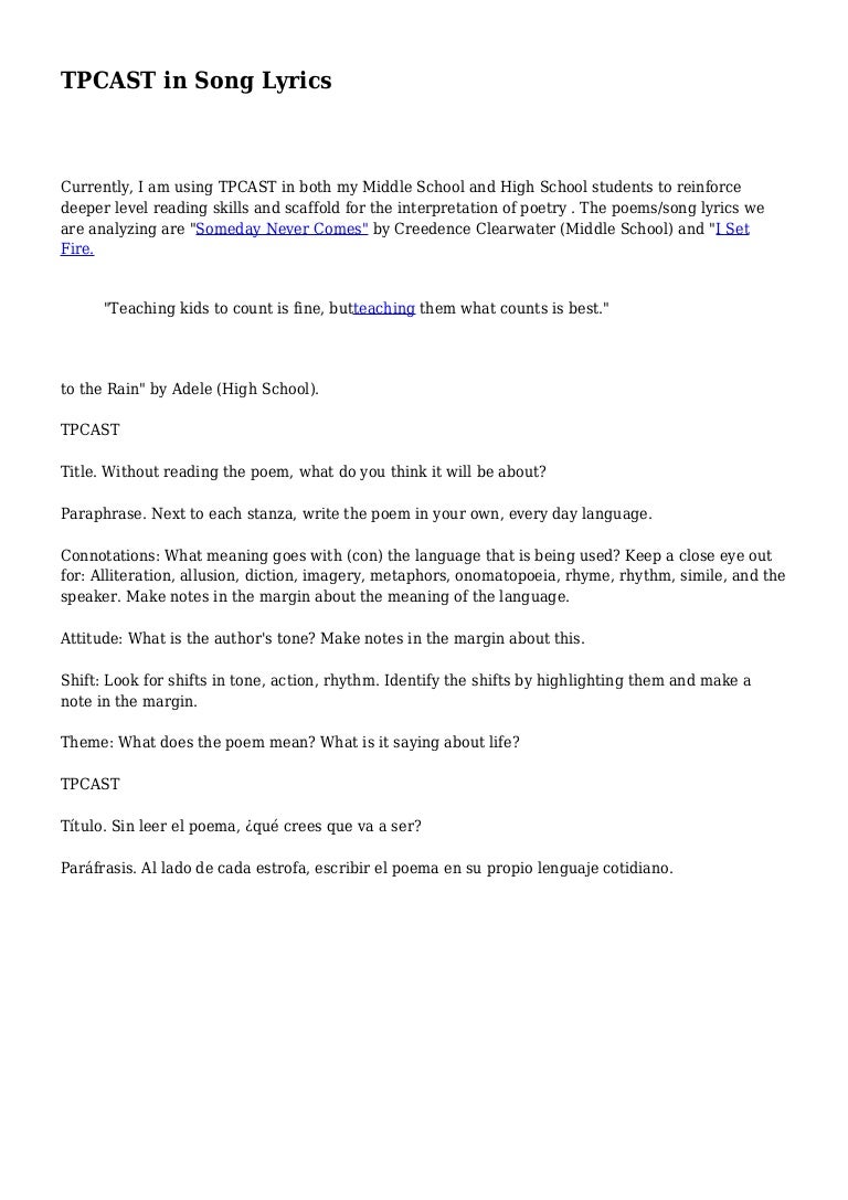Poetic Devices In Song Lyrics And Poems Short Essay Assignment Pdf Free Download