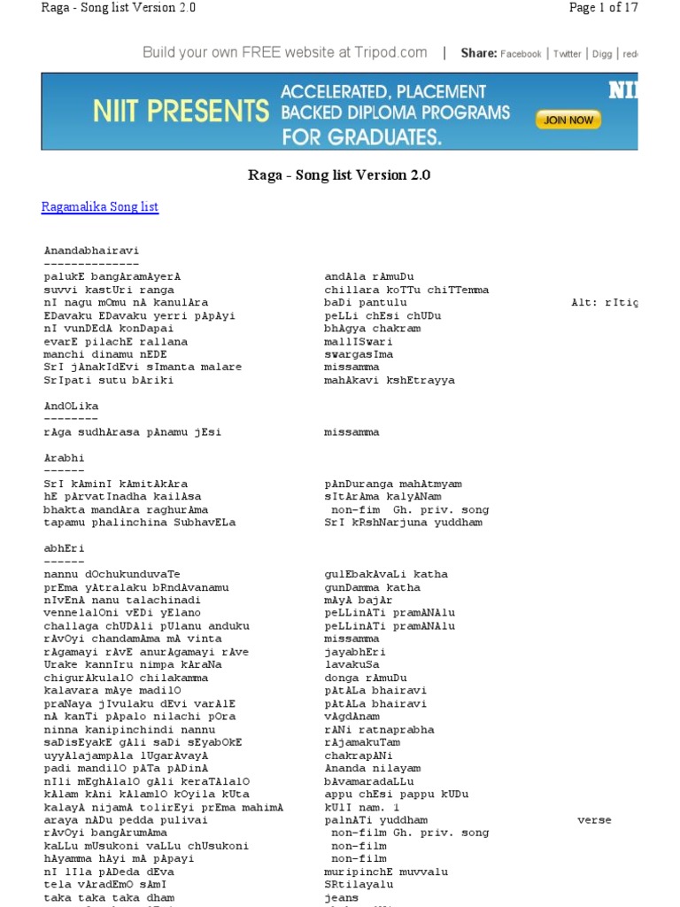 Raga Malika Telugu Songs With Raga Details