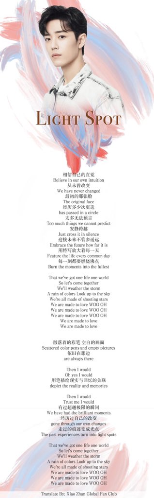 肖战影音会 Daytoy Xiao Zhan On Twitter 200425 Trans Xiao Zhan New Single Light Spot Is Realeased Here Is The Translation Of The Story Behind The Song And The Eng Version Of The Lyrics