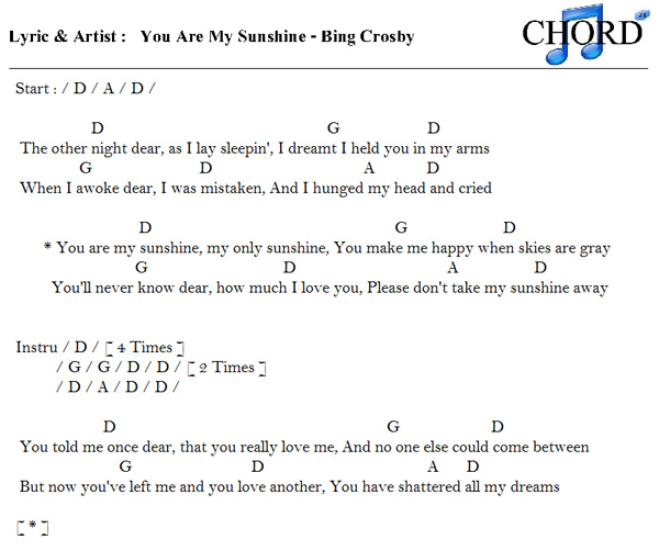 You Are My Sunshine Music Travel Love Cover Lyrics Chords Chordify